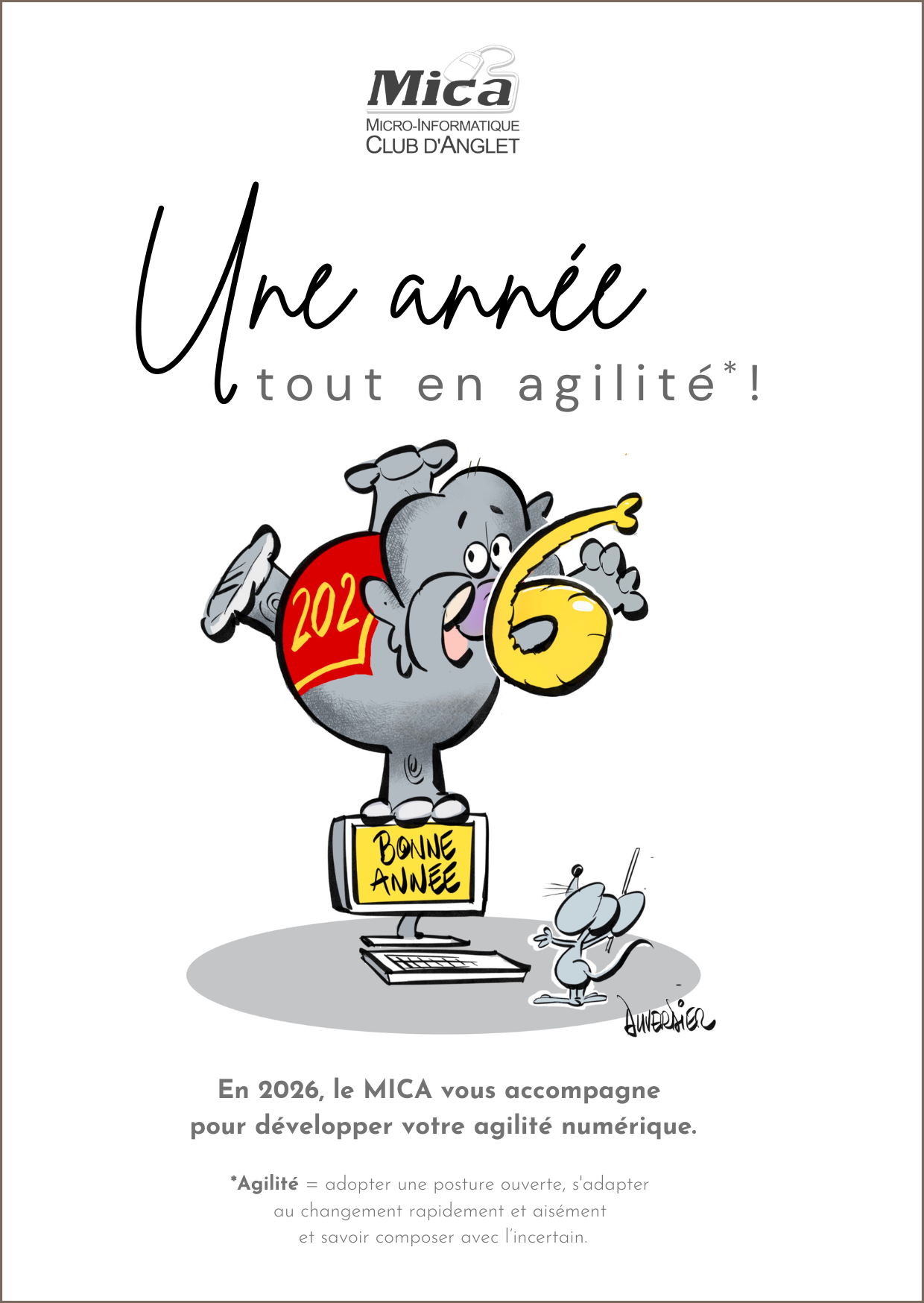 Nos activités reprennent le 5 janvier 2026. Le MICA vous adresse ses meilleurs vœux pour cette nouvelle année et vous invite à prendre les bonnes résolutions 😇 !